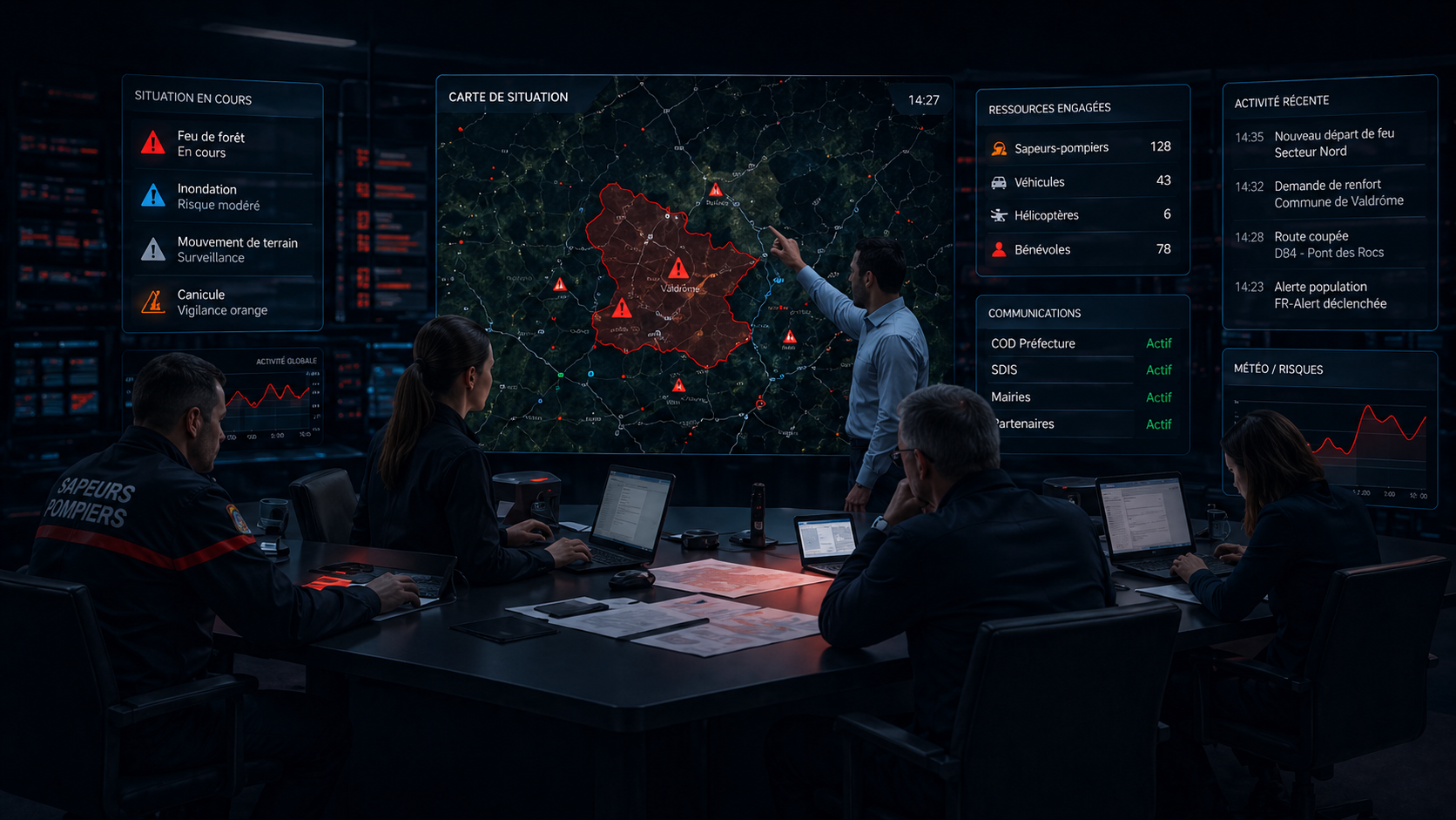 Pharos Crisis Simulator génère des exercices de gestion de crise complets et réalistes : territoire fictif, scénario cohérent, injects dynamiques, débriefing pédagogique et rapport RETEX. Pour les sapeurs-pompiers, les élus, les cadres territoriaux, les formateurs et toutes les organisations.